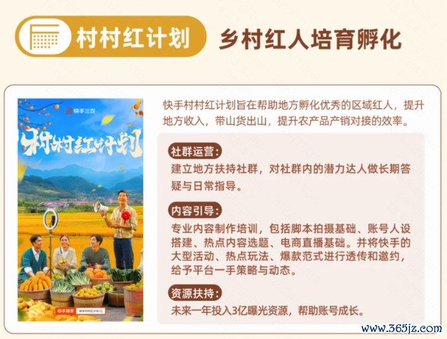 未来一年,快手将在村村红计划中投入3亿曝光资源,帮助账号成长,还将从社群运营和内容指导等方面孵化区域红人,提升地方收入,带山货出山,提升农产品产销对接效率。